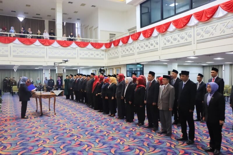 Kompastuntas.com, Bandar Lampung – Gubernur Lampung diwakili oleh Inspektur Provinsi Lampung, Bayana melantik dan mengambil sumpah/janji jabatan pejabat administrator, pejabat pengawas, dan pejabat fungsional di lingkungan pemerintah Provinsi Lampung bertempat di Balai Keratun Lt III, Komplek Kantor Gubernur, Bandar Lampung, Jumat (10/10/2025).