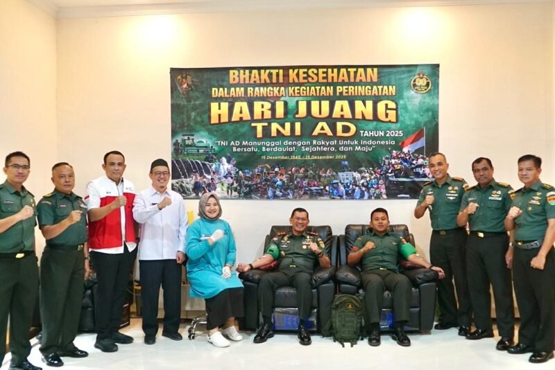 Kompastuntas.com, Bandar Lampung — Pangdam XXI/Radin Inten, Mayjen TNI Kristomei Sianturi, S.Sos., M.Si.(Han), mengikuti kegiatan Bhakti Kesehatan donor darah dalam rangka memperingati Hari Juang TNI AD Tahun 2025. Kegiatan yang mengusung tema “TNI AD Manunggal dengan Rakyat untuk Indonesia Bersatu, Berdaulat, Sejahtera dan Maju” ini diselenggarakan di PMI Provinsi Lampung, Jl. Sam Ratulangi No.105, Kecamatan Kedaton, Kota Bandar Lampung, Rabu (10/12/2025)