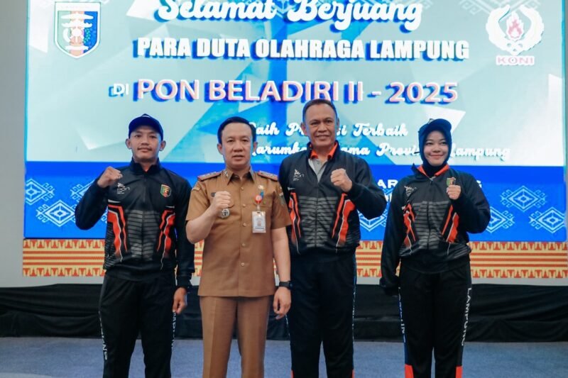 Kompastuntas.com, Bandar Lampung– Pemerintah Provinsi Lampung secara resmi melepas kontingen atlet bela diri yang akan berlaga pada Pekan Olahraga Nasional (PON) Beladiri II Tahun 2025 di Kudus, Jawa Tengah. Pelepasan dilakukan di Mahan Agung, Selasa (07/10/2025), dipimpin Sekretaris Daerah Provinsi Lampung, Marindo Kurniawan, mewakili Gubernur Lampung.
