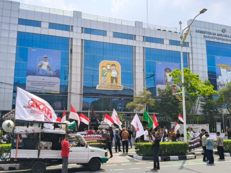 Jakarta – ratusan massa aksi dari berbagai perwakilan lembaga kemasyarakatan dari Provinsi Lampung atas nama Triga yang merupakan gabungan dari beberapa Keorganisasian baik dari DPP Akar Lampung, DPP Pematank dan Aliansi Keramat serta ikut juga disokong oleh Puluhan Mahasiswa yang ada di Jakarta hari ini kembali menggeruduk Kantor Kementerian ATR BPN RI.