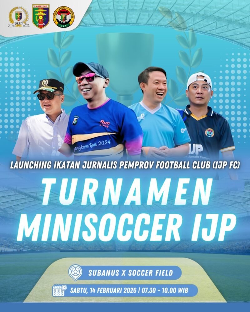 Kompastuntas.com— Teluk Betung, Ikatan Jurnalis Pemprov (IJP) Lampung resmi meluncurkan tim sepak bola IJP Football Club (IJP FC) yang ditandai dengan gelaran Turnamen Minisoccer IJP, Sabtu (14/2/2026) di Subanus X Soccer Field.