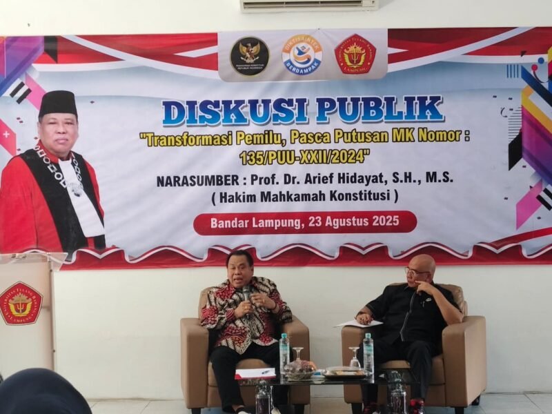 Diskusi publik di Universitas Tulang Bawang (UTB) Lampung, Sabtu lalu, menghadirkan Hakim MK Prof. Arief Hidayat. Forum akademik ini memberi gambaran bagaimana MK hendak menanamkan kesadaran hukum kepada publik, terutama mahasiswa. Arief mengingatkan bahwa Mahkamah berperan sebagai penafsir konstitusi, dan putusannya wajib dipahami sebagai pijakan hukum.